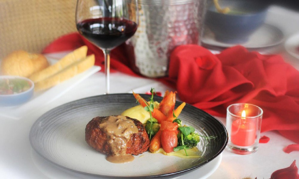 Double Chin Restaurant & Bar dengan Munch What’s Mine ditawarakan untuk tamu dengan harga IDR 399.000 nett per pasangan, tamu akan mendapatkan couple set menu dinner, dua gelas wine, kesempatan membuat cocktail spesial untuk pasangan disertai hiburan dari Sixty Six Band.