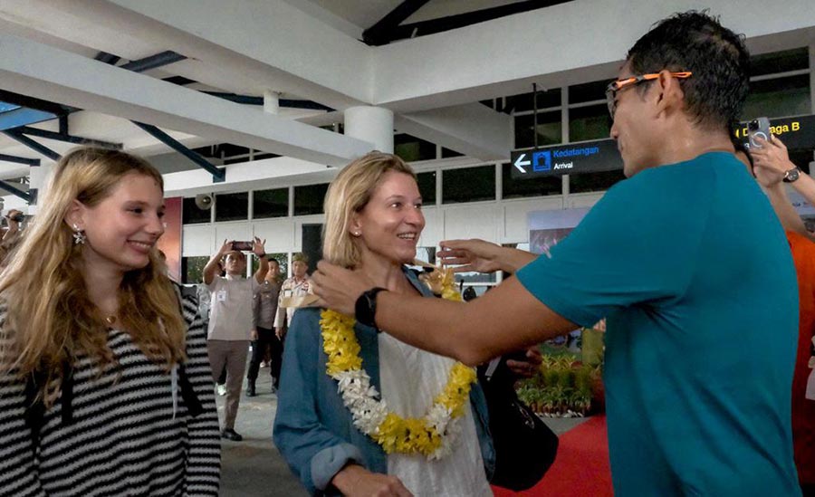Menparekraf hadir bersama Gubernur Kepulauan Riau Ansar Ahmad dan Bupati Bintan Roby Kurniawan untuk menyambut wisatawan yang datang dari Singapura untuk menghabiskan waktu libur tahun baru mereka di Bintan.