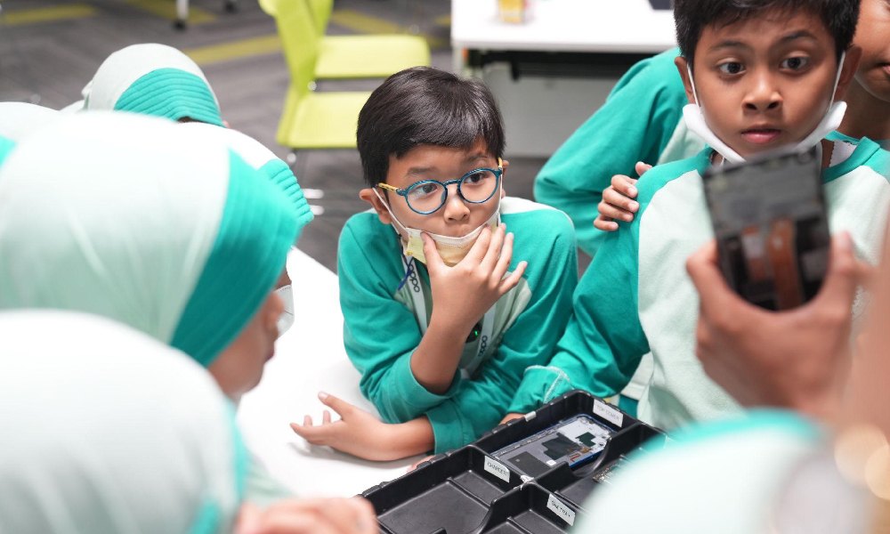 Para siswa kelas 4 tersebut mendapatkan kesempatan untuk melihat secara langsung bagaimana smartphone, perangkat yang akrab dengan keseharian mereka, diproduksi dengan teknologi canggih.