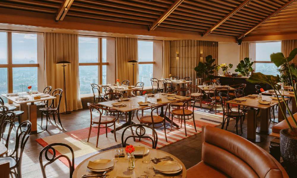 Transisi ruangan mengalir dari area dining indoor yang hangat dan modern, menuju teras terbuka dengan pemandangan kota yang luas. Dua private room untuk perayaan personal, serta dua bar yang melengkapi keseluruhan desain, memperkuat kenyamanan yang menjadi inti dari pengalaman baru ini.